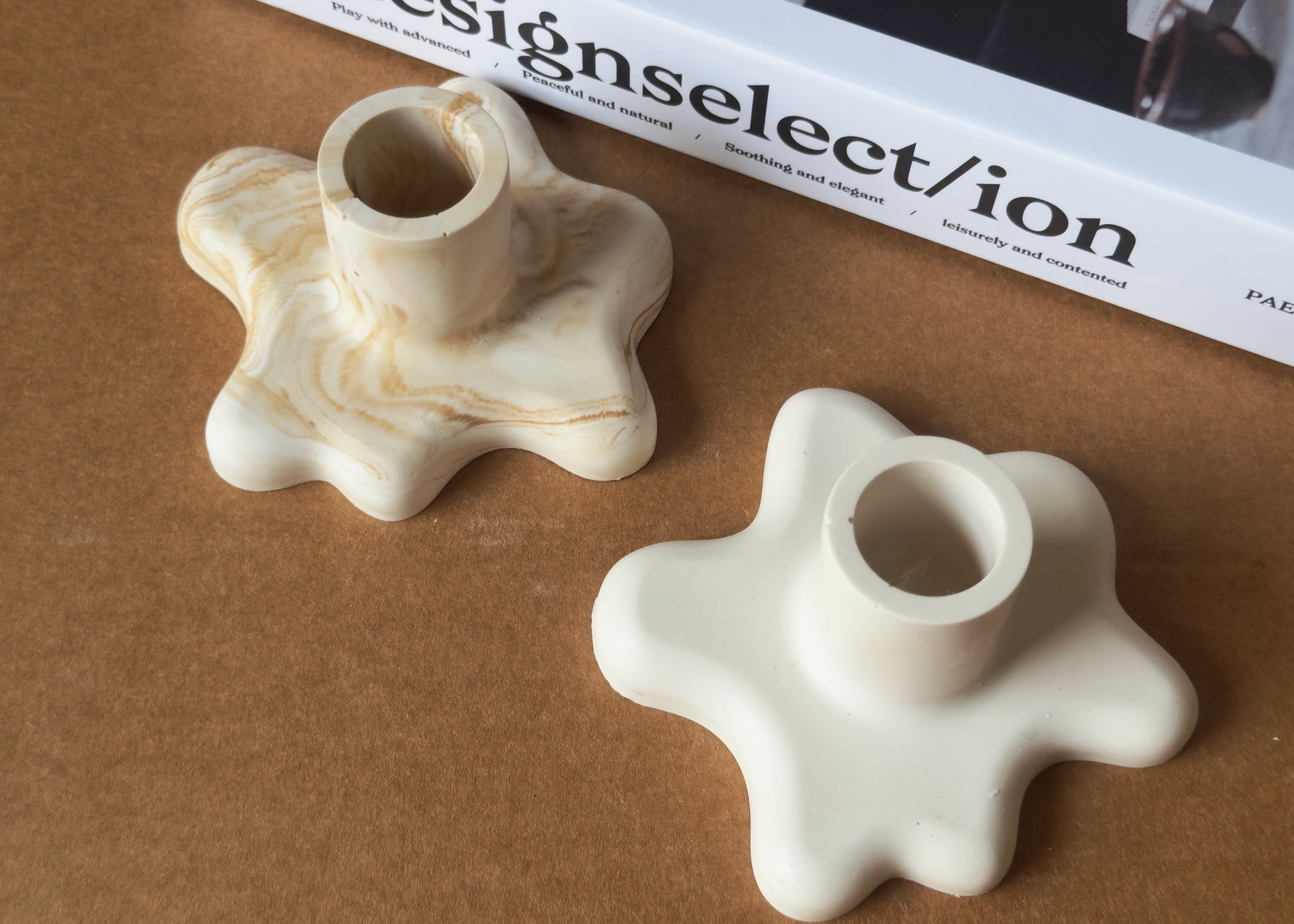 A modern, sculptural holder designed for taper candles up to 2 cm in diameter. Handcrafted with care to bring warmth and minimal elegance to your home décor. Perfect for styling dining tables, mantels, or cozy corners.