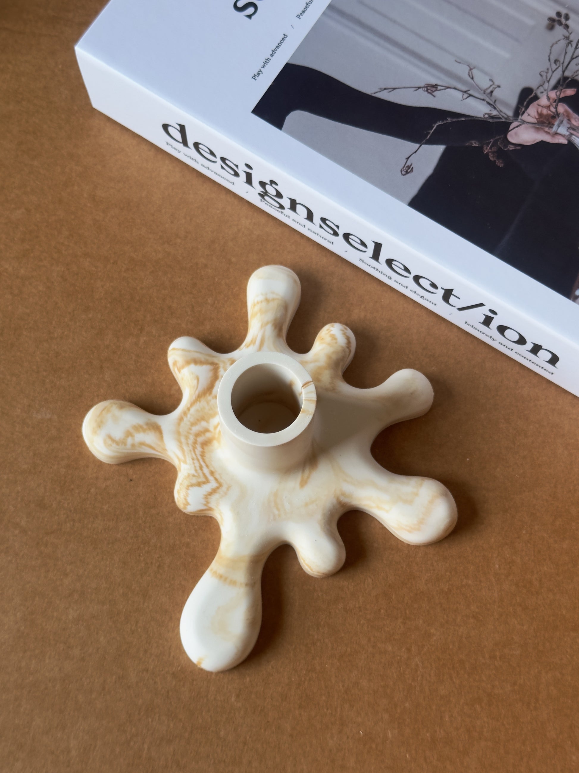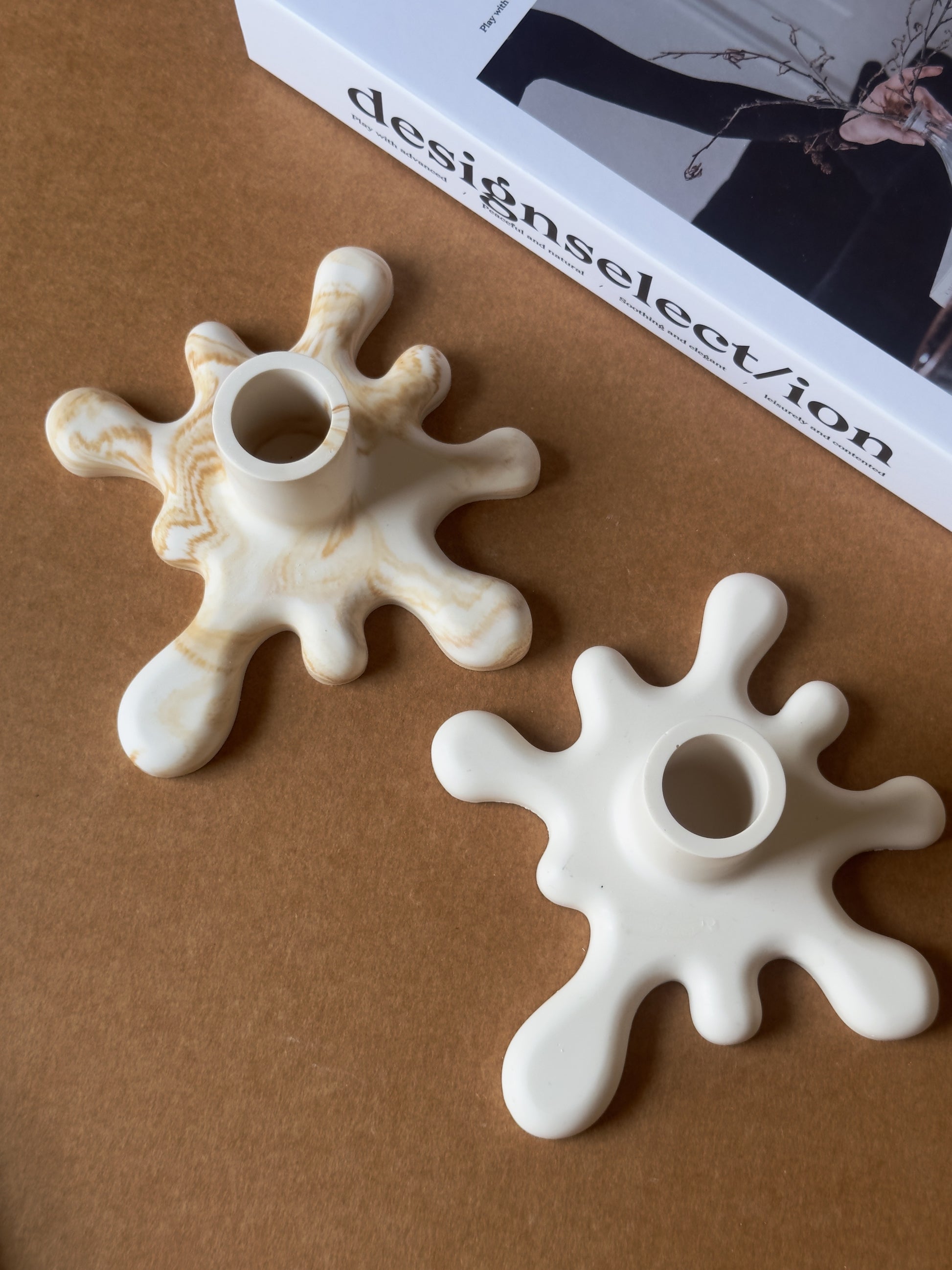 A wavy, sculptural holder designed for taper candles. Handcrafted to bring a modern, minimal touch to any space.