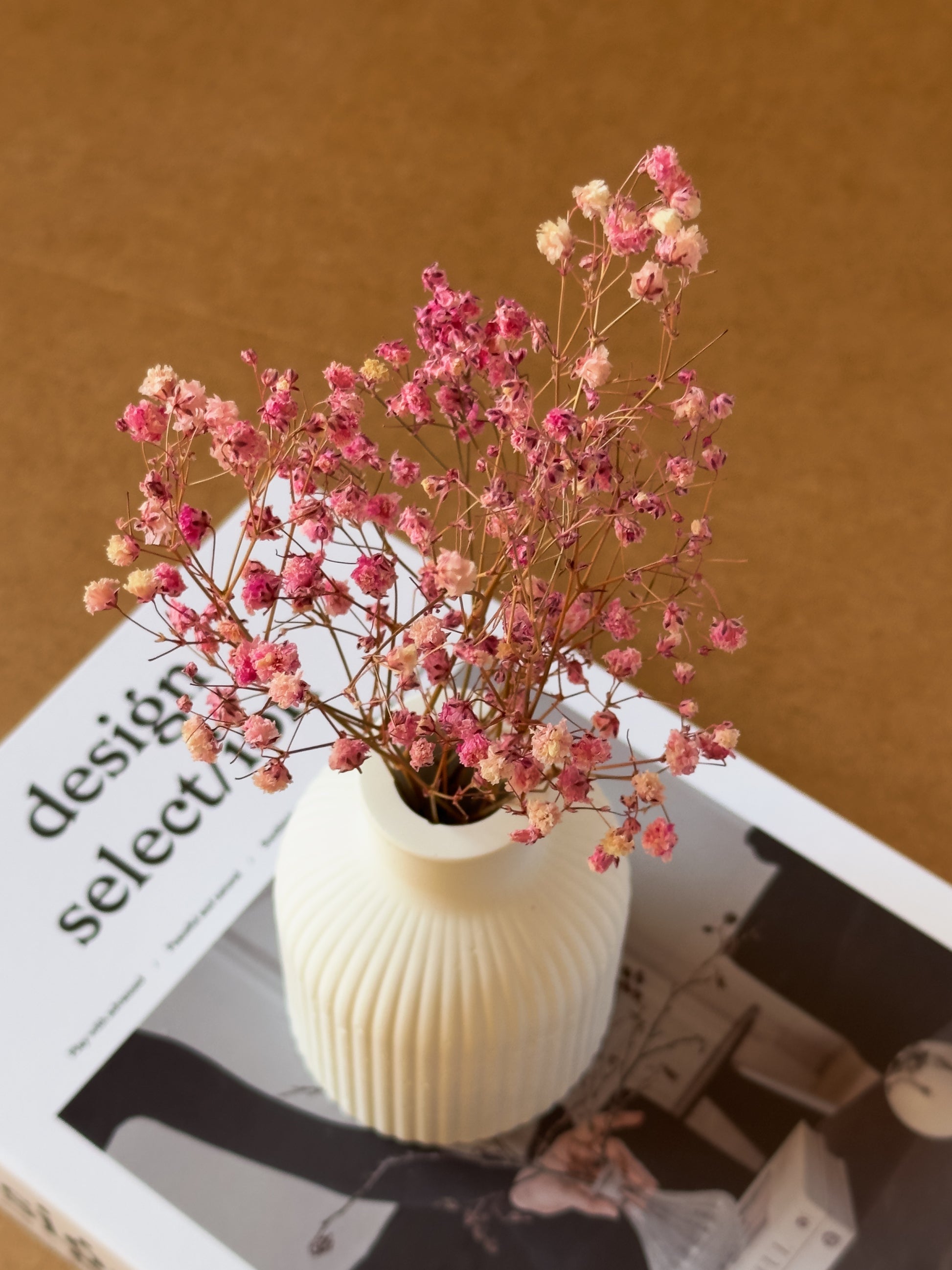 Ribbed Vase – Handcrafted Jesmonite vase with a softly ribbed, minimalist design. Perfect for styling on shelves, coffee tables, or sideboards with dried or artificial florals. Each piece is unique, adding timeless warmth to any home.