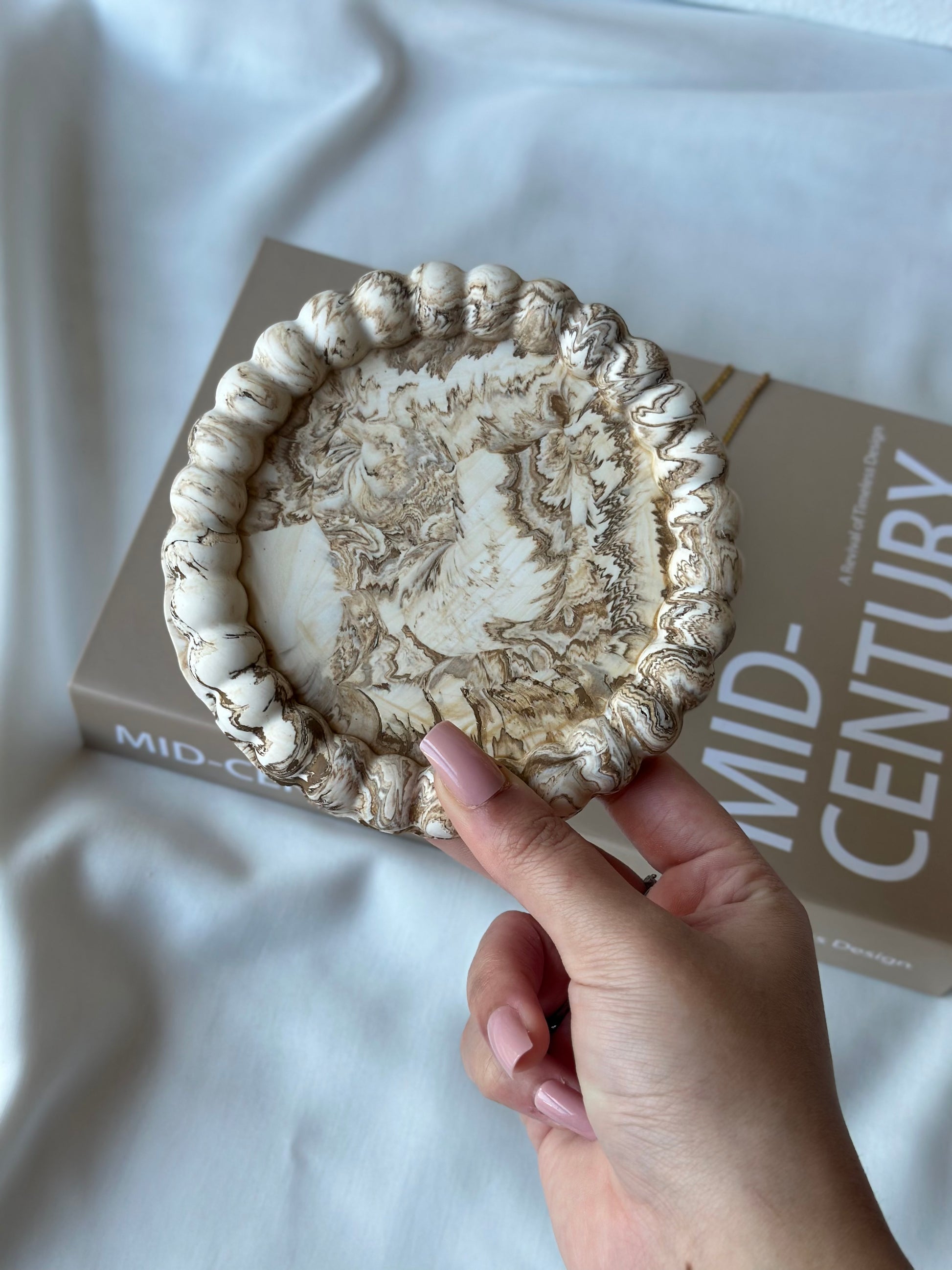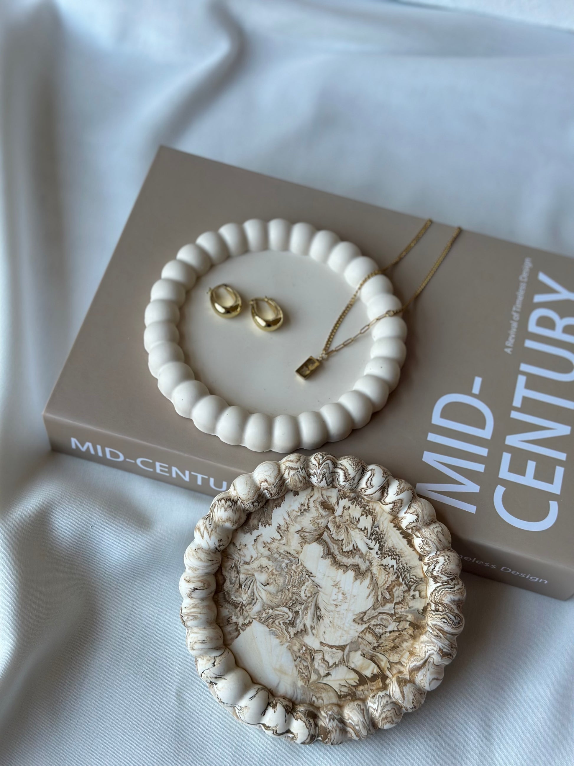 Each piece is handcrafted from eco-friendly Jesmonite, so slight variations in colour, texture, or small air bubbles may occur. These natural details reflect the handmade process and make every piece unique.