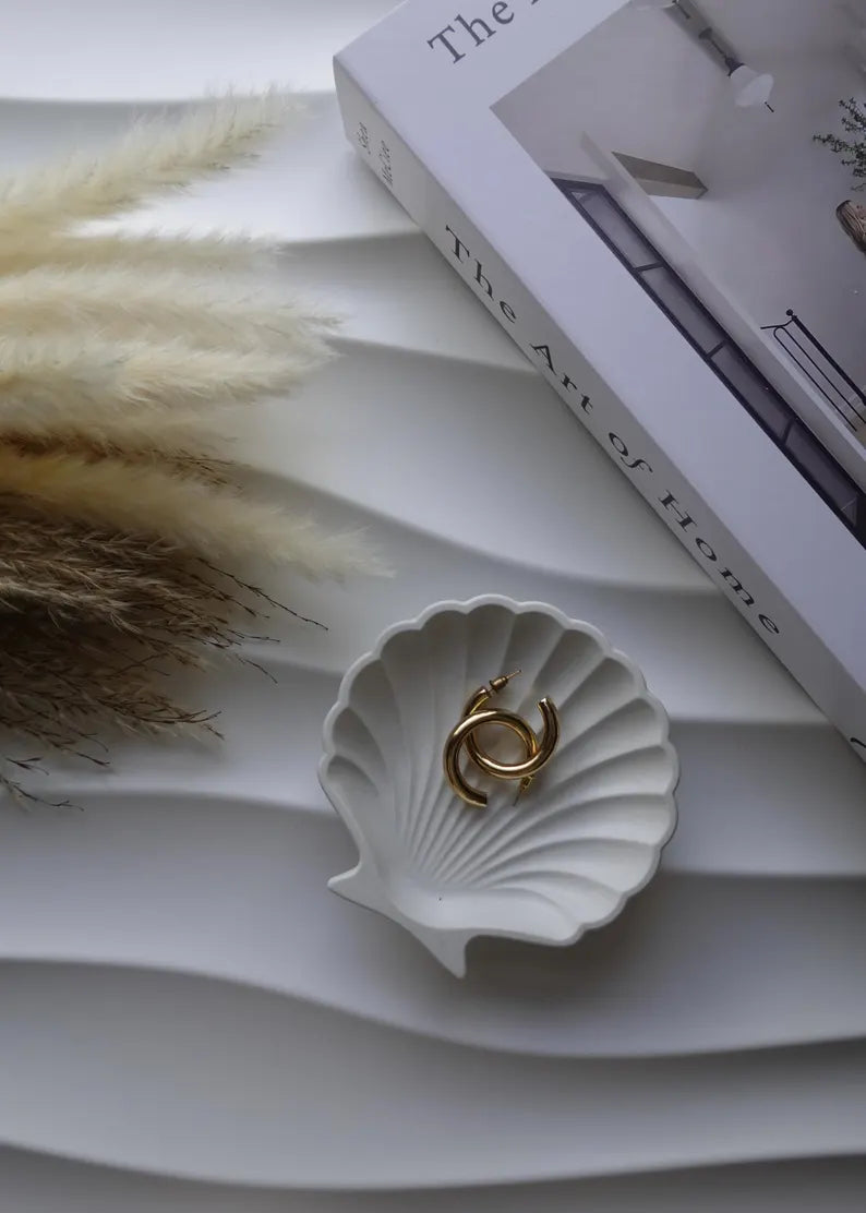 Sea Shell Tray – Handcrafted Jesmonite tray with soft, shell-inspired curves. Perfect for jewelry, keys, soap, or styling any space with a serene coastal vibe.